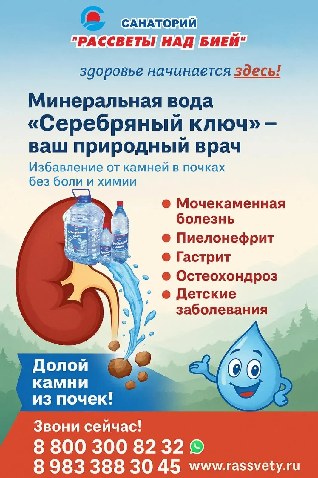 Наша минеральная вода «Серебряный ключ» – лучшее средство от камней в почках! А также, она растворяет солевые отложения в суставах, часто заменяя лекарственную и даже хирургическую терапию. А голубая глина Бехтемирского месторождения восстанавливает поврежденные клетки, насыщая их всеми необходимыми минералами. Глина высокоэффективна при лечении остеохондрозов, артритов, артрозов и последствий травм.