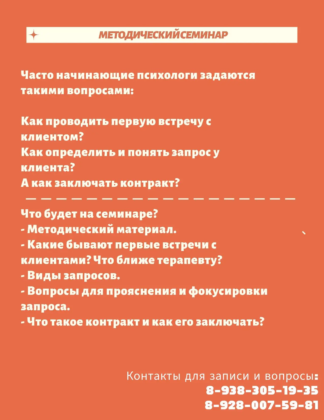 Я предлагаю Вам 2 встречи в месяц, которые чередуются: одна теоретическая, потом одна супервизорская. И далее по кругу.