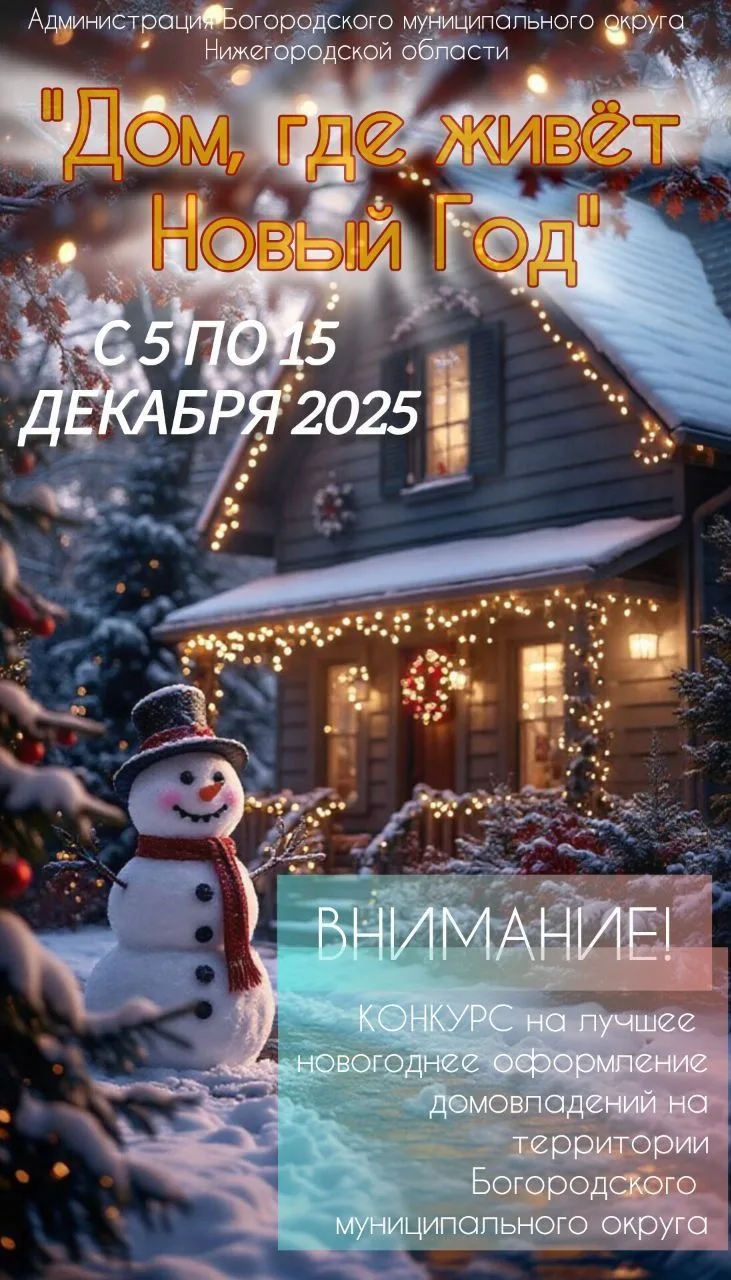 🎄✨ Конкурс «Дом, где живет Новый Год»! 🎄✨Дорогие жители Богородского округа! 🌟Приглашаем вас принять участие в конкурсе на лучшее новогоднее оформление домов и территорий! 🏠🎅 Покажите свою праздничную атмосферу и поборитесь за три призовых места! 🏆🎉 Как участвовать?
