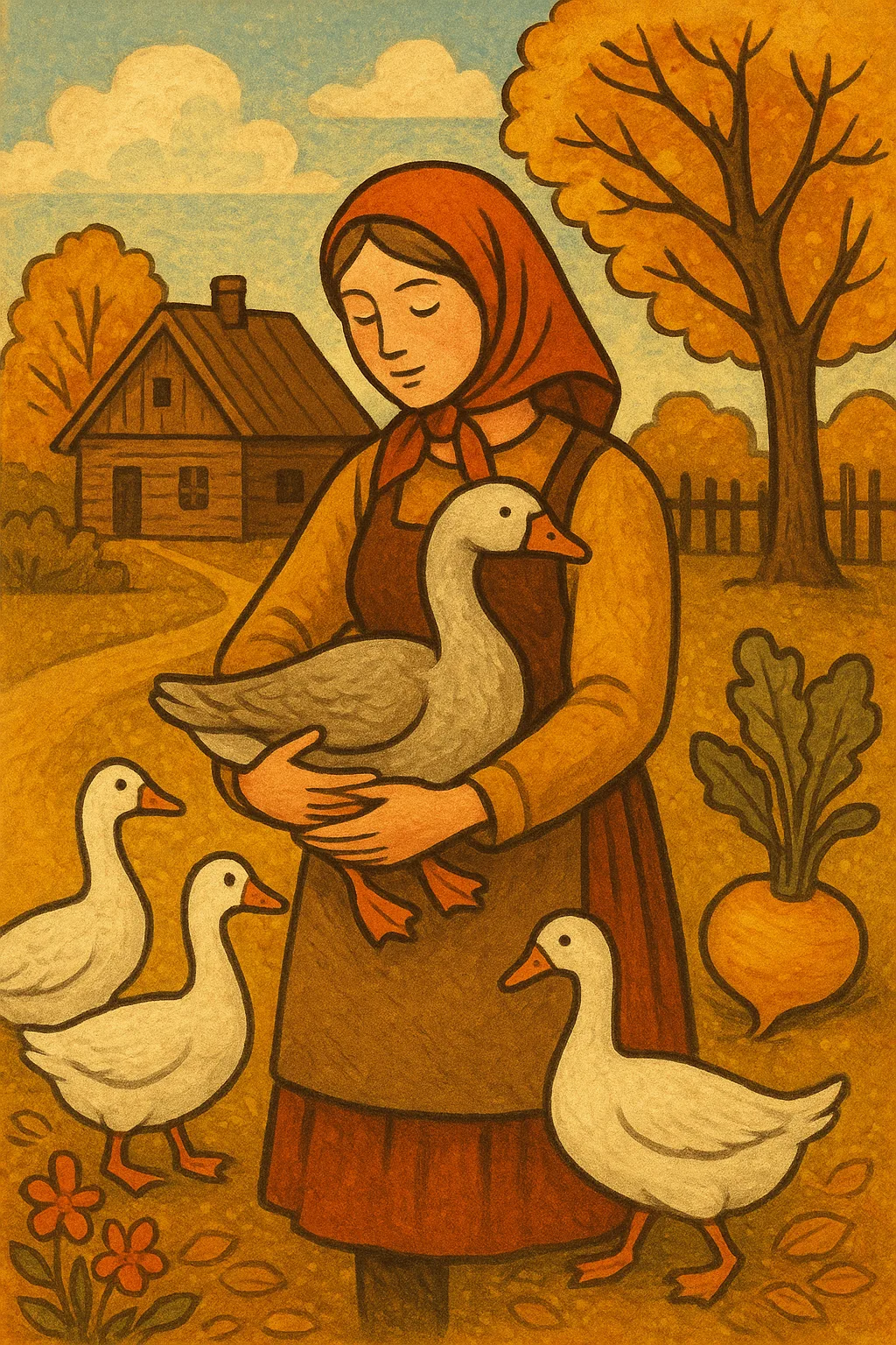 🍗 Традиции: начинался забой гусей, главным блюдом был печёный гусь. Репу убирали с полей — праздник называли Репорезом.
