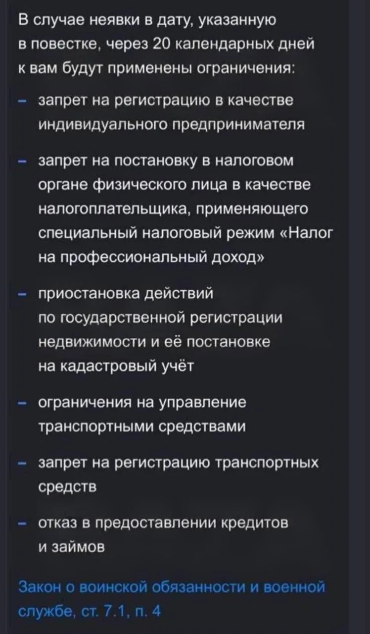 ⚠️ Что грозит при игнорировании повестки? Через 27 дней вступают в силу санкции: