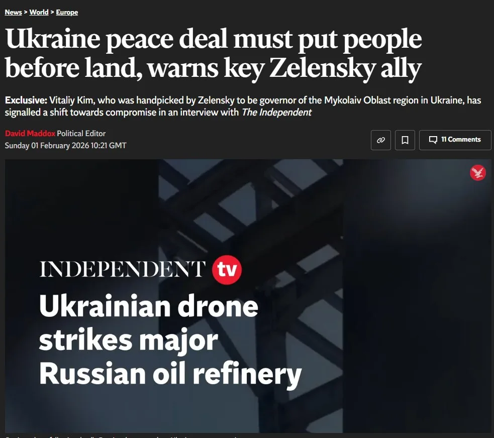 ▪️В интервью британской газете один из губернаторов Зеленского Виталий Ким призвал сместить фокус мирного урегулирования с споров о границах на прекращение войны и гарантии безопасности.