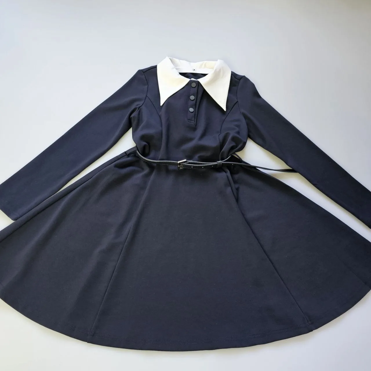 Красивое трикотажное платье спереди на кнопках Съемный воротничок. Ремешок в комплекте. Отлично смотрится!