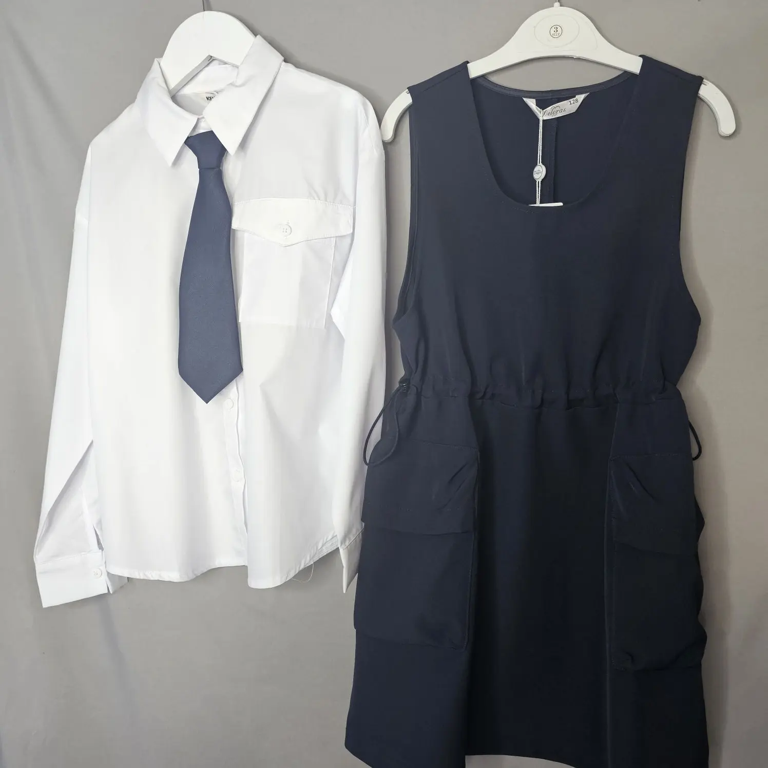 Блуза выполнена из качественной ткани, приятной на ощупь, воротничок синим галстуком, комфортна в носке.