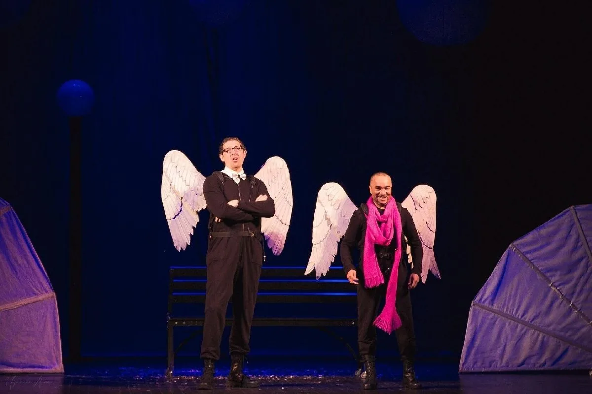 Верите вы в чудеса или нет, но эта история недаром случилась именно в наши времена. Консервативный адвокат Вадим готовится сделать предложение своей девушке Ольге, а взбалмошная актриса Дина спешит к своему жениху Лёве. Случайное столкновение, Вадим протягивает Дине руку, и они не могут разнять ладони. Мистика — скажете вы. Нет — чудо! Это ангелы-хранители поспорили о судьбах своих подопечных, и теперь от чувств Вадима и Дины зависит, кому из ангелов достанутся крылья, а кому тёплый вязаный шарф. Только нашим героям совсем не до шуток. У Вадима завтра суд, а у Дины спектакль, и им во что бы то ни стало нужно разъединить руки! Романтическая новогодняя комедия, наполненная светлыми чувствами, музыкой, предвосхищением чуда и верой в будущее, подарит удивительные впечатления и незабываемый вечер в театре.