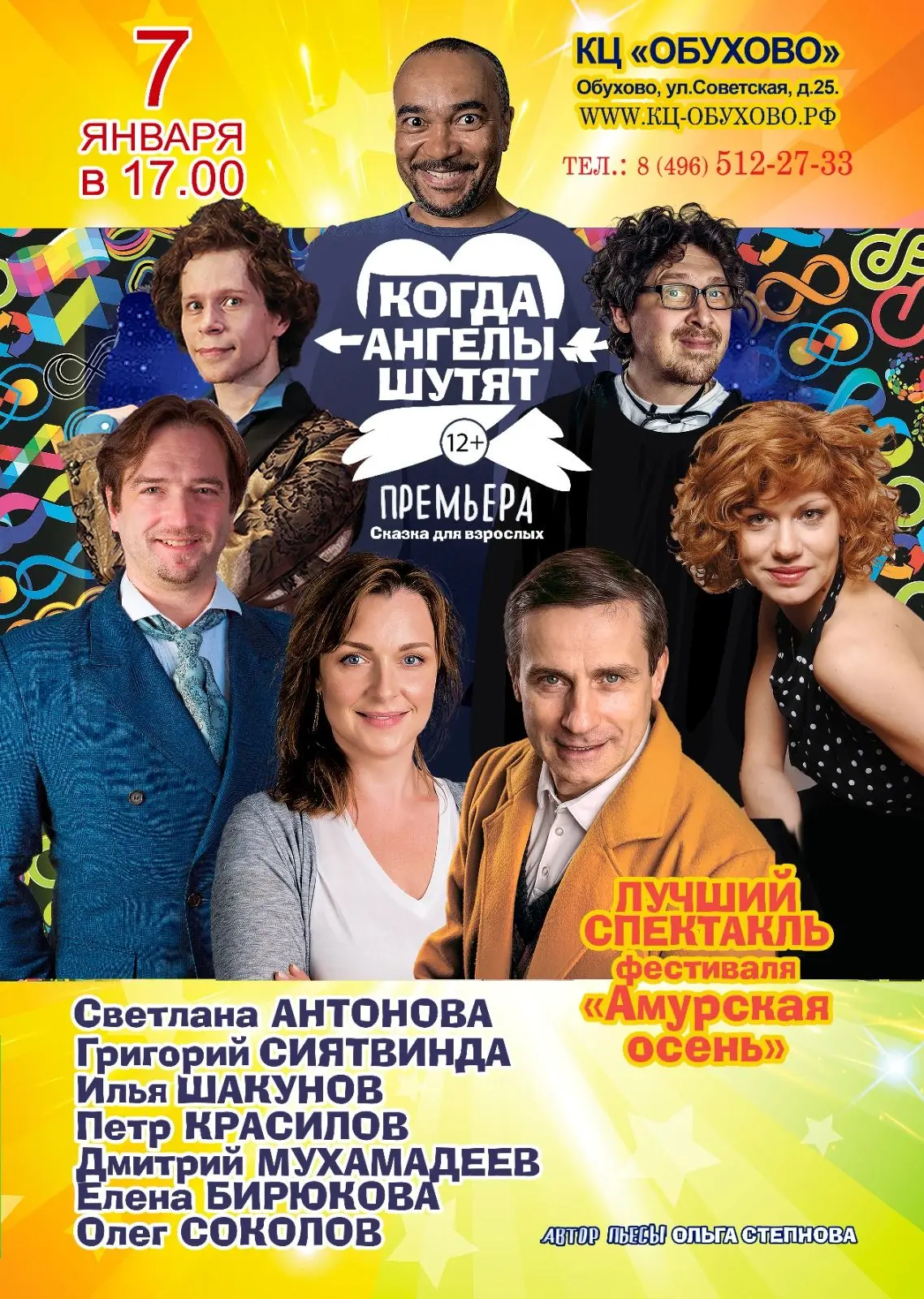 Светлана Антонова, Григорий Сиятвинда, Пётр Красилов, Елена Бирюкова, Илья Шакунов, Дмитрий Мухамадеев, Олег Соколов - в спектакле "Когда Ангелы шутят".
