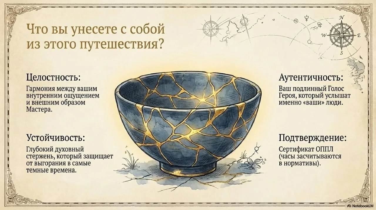 💎 Результат: Вы соберете себя заново, как чашу Кинцуги. Обретете устойчивость, проработаете «синдром самозванца» и найдете свой уникальный голос.