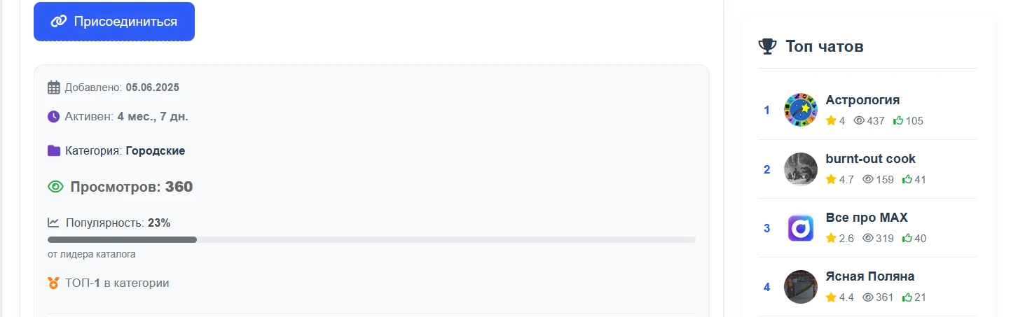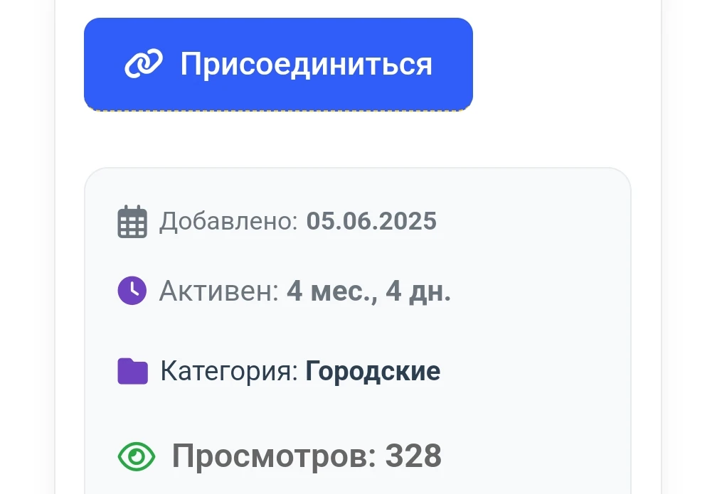Ребят, кароч каталог временно на ремонте, через время появится кнопка присоединиться, она будет под описанием чата в каталоге по ссылке в закрепе😊