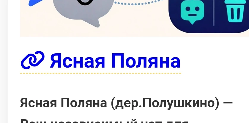 Ясная Поляна (дер.Полушкино) — независимый чат для общения соседей, обмена новостями района, объявлениями и полезными советами. Доступен круглосуточно, помогая создать уют и комфорт в вашем дворе/доме.