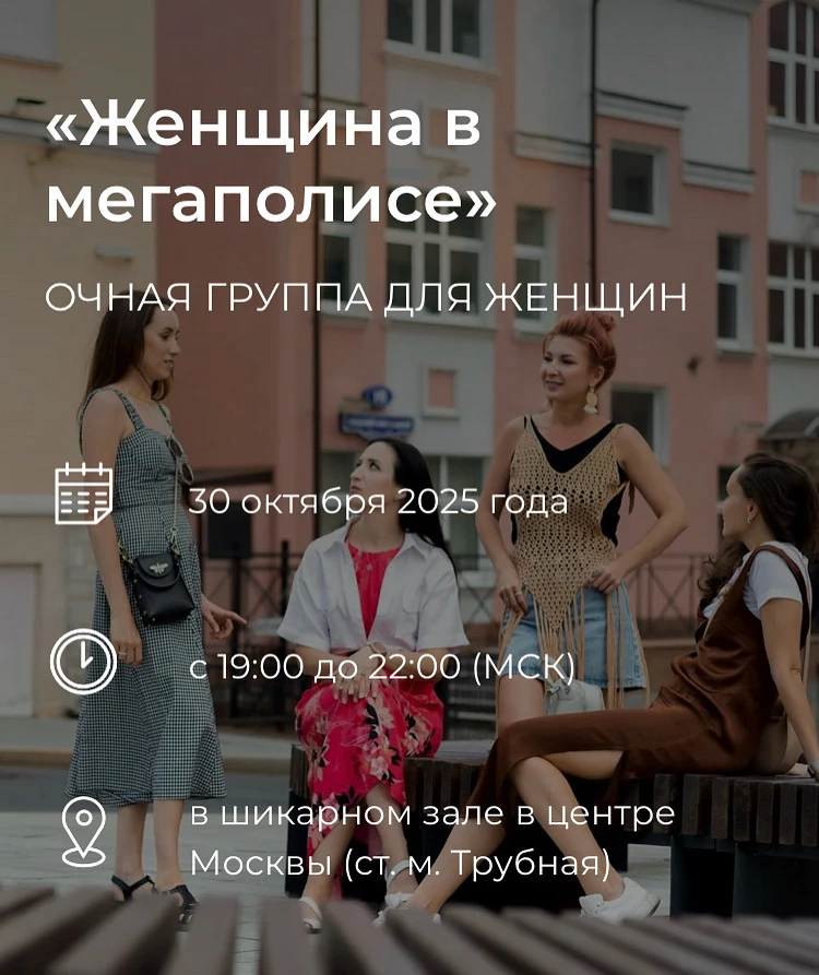✨30 октября стартует второй сезон годовой терапевтической группы в Москве «Женщина в мегаполисе» — группы, полной женского присутствия.