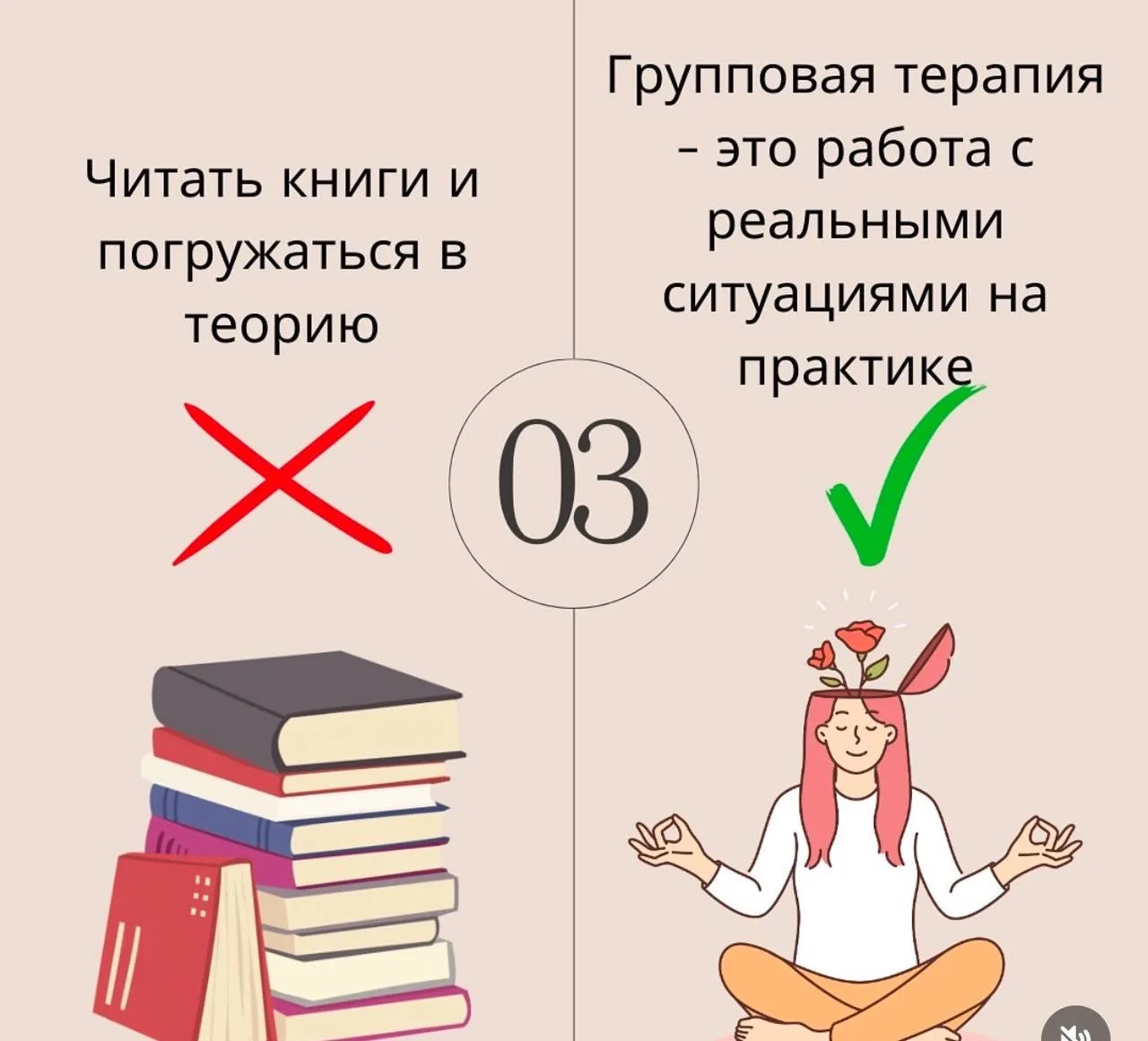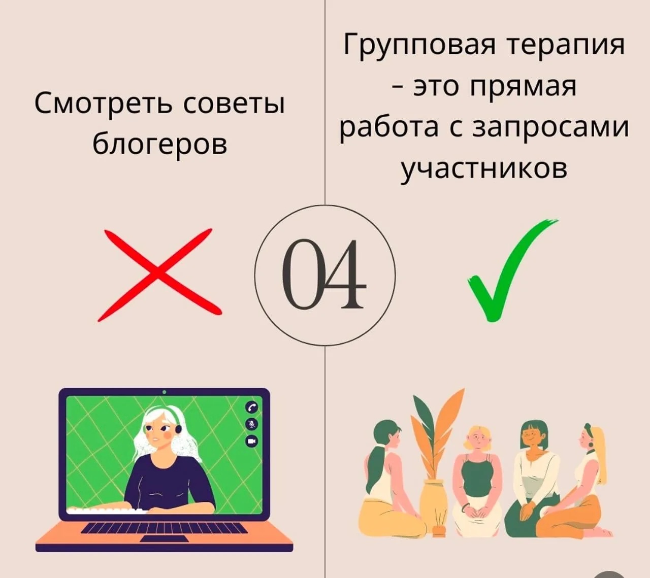 Я понимаю, что брать индивидуальные консультации не всем подходит, хотя бы по стоимости, да и не нужно в ряде случаев. И группа это реальный способ взглянуть иначе на свою жизнь и как вы ее проживаете. И самое главное пробовать сразу иначе, поняв в чем ваши убеждения, травматичный опыт мешает получить желаемое.