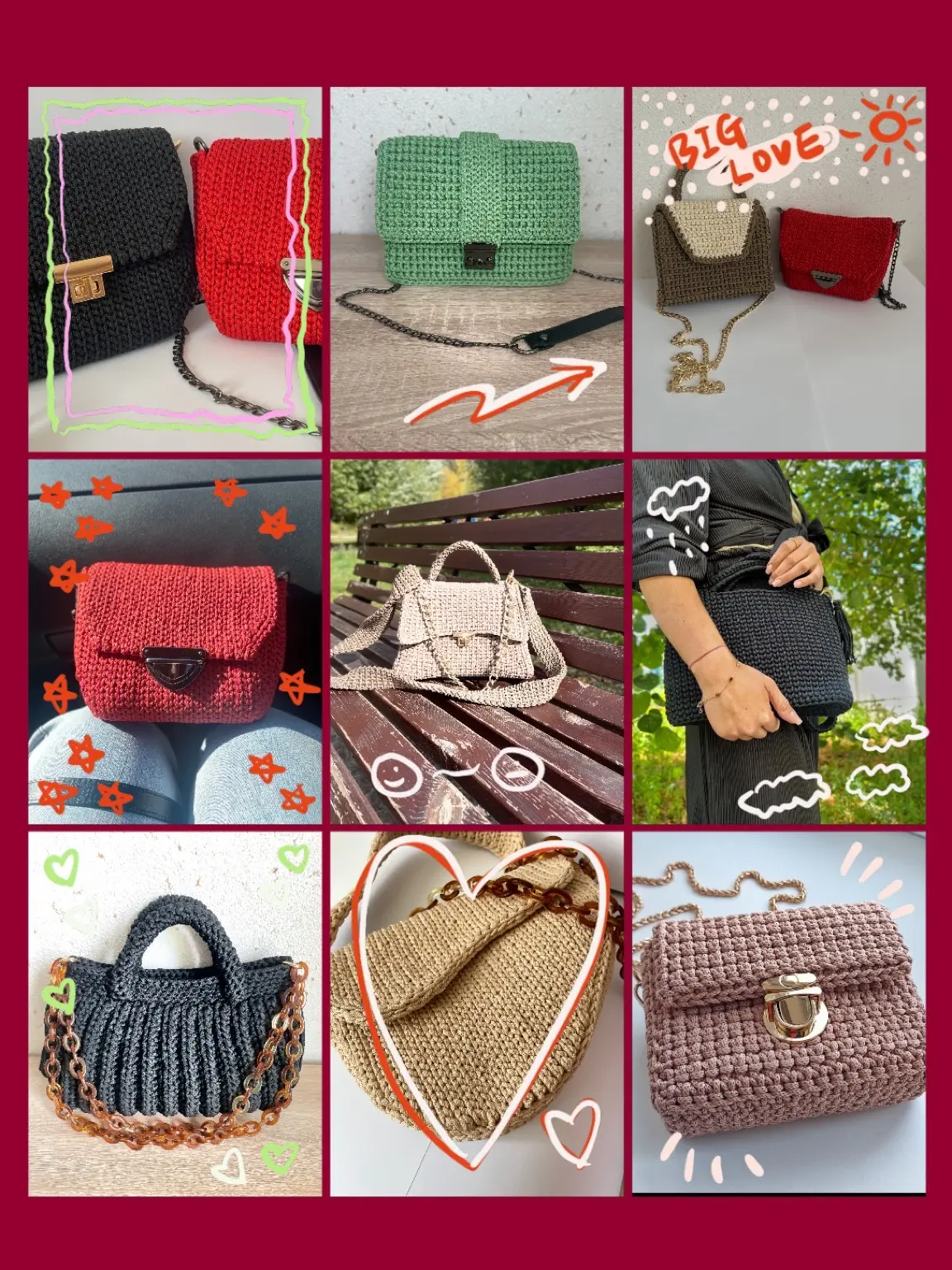 Вот решила поделиться своей любовью к ручному труду и порадовать вас уникальными вязаными сумочками собственного производства. Каждая сумочка сделана с душой и теплом моих рук, каждая ниточка пропитана вдохновением и радостью творчества.