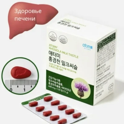 В состав Atomy Rhodiola Milk Thistle входят такие экстракты как молочный чертополох, родиола и витамин B.