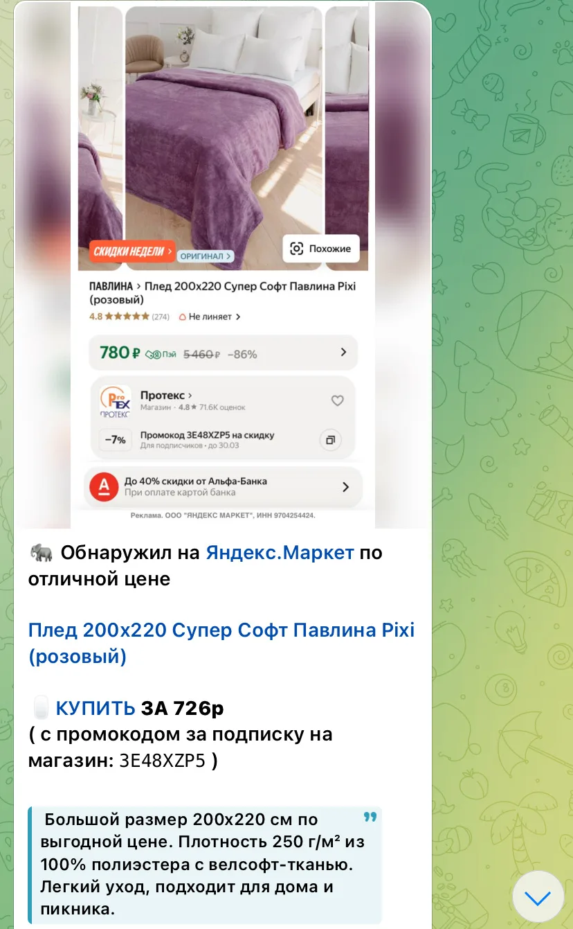 Больше товаров с хорошими скидками тут 👉 https://t.me/+sJDBj9T0DsE3NDgy