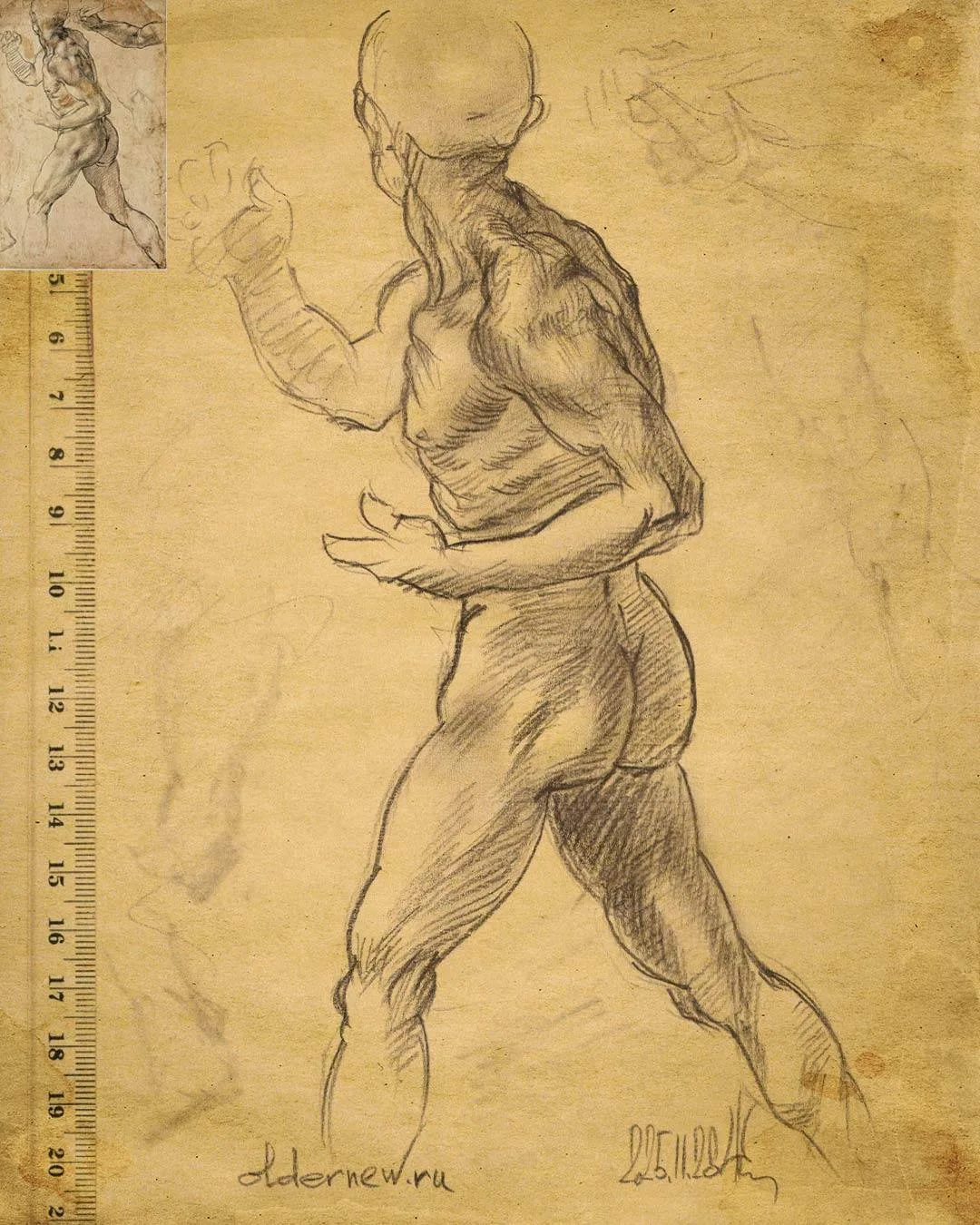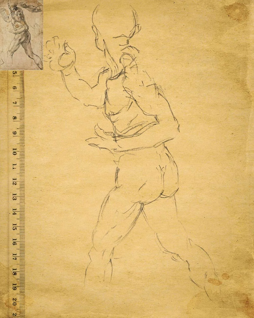 Микеланджело Буонарроти. Подготовительный рисунок для фрески «Битва при Кашине» (так и не исполненной) 1505 - 1606.