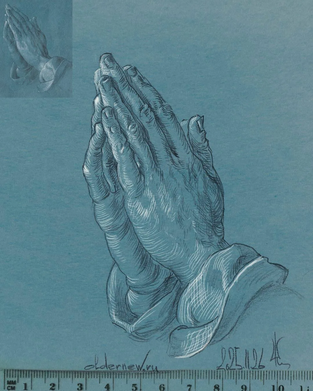 Альбрехт Дюрер. «Руки молящегося». 29,1х18,7 см. Перо, тушь, белила. 1508 г.