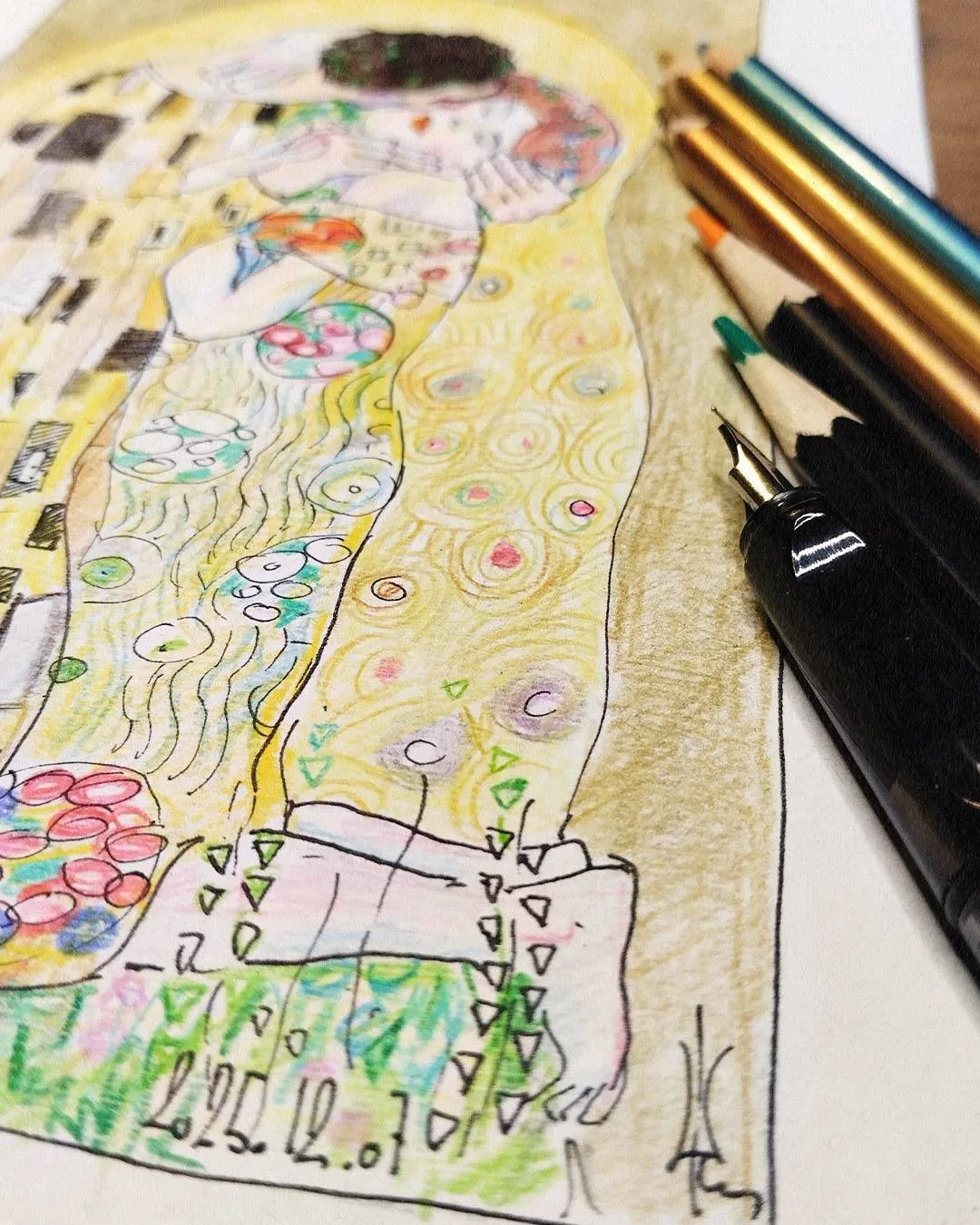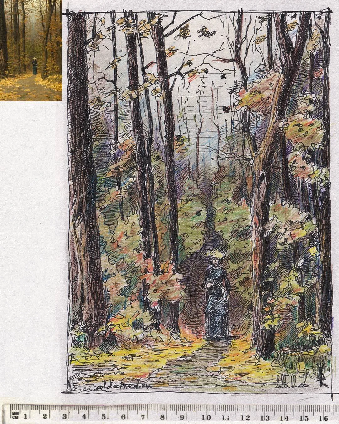 Копия — ручка чернильная, цветные карандаши, бумага, А5.