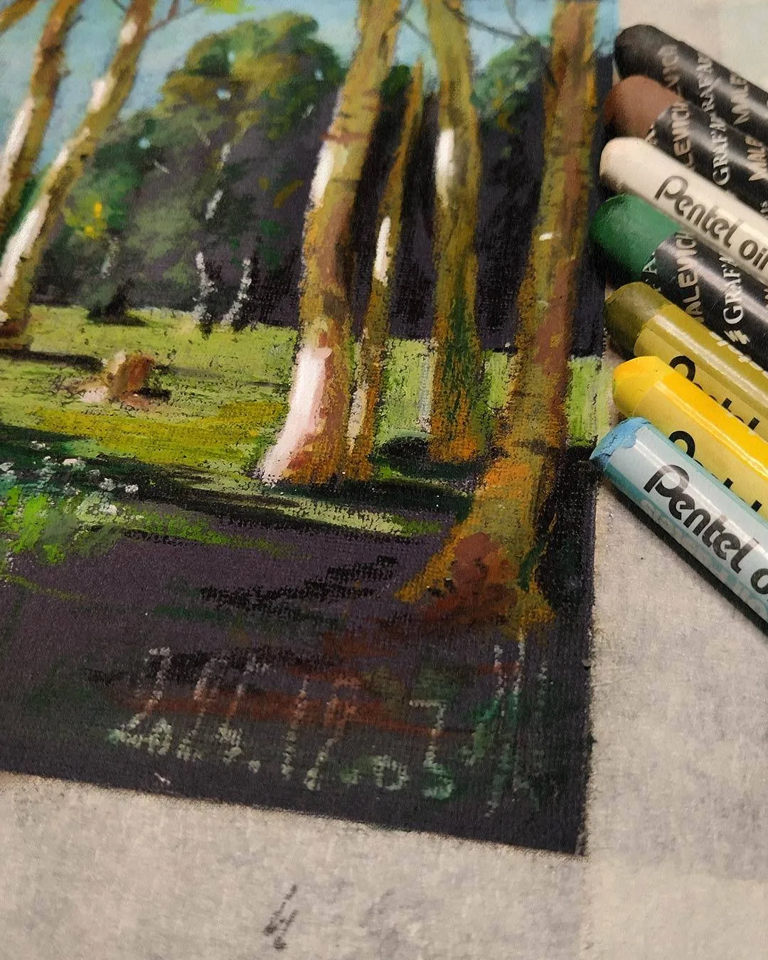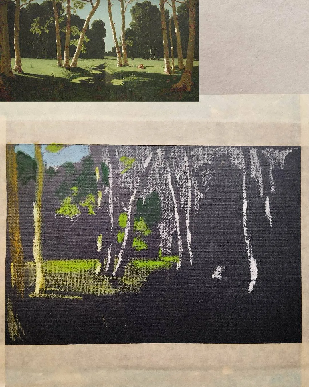 Копия — масляная пастель, бумага для пастели тонированная, А4.