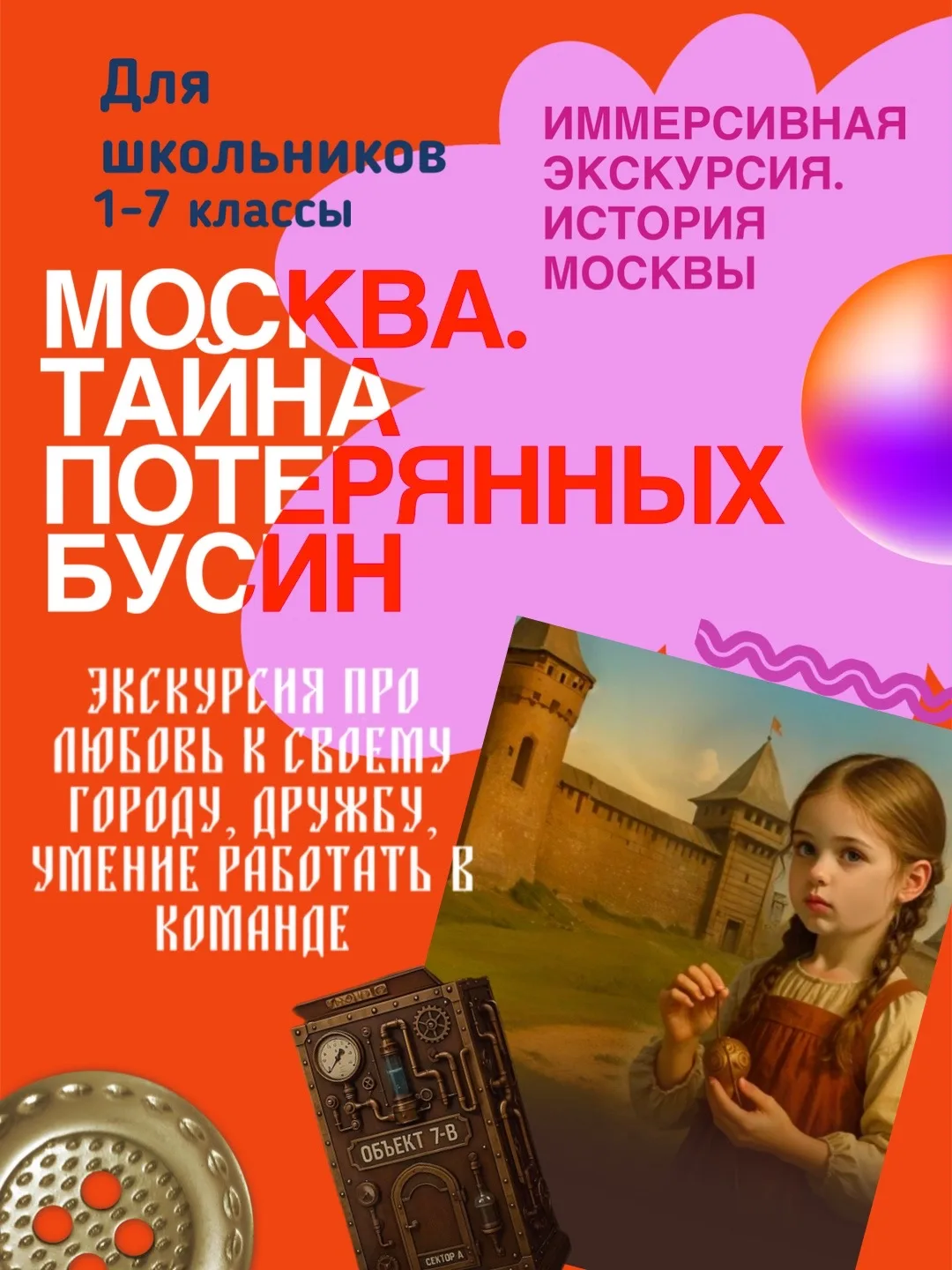 РЕЗУЛЬТАТ: Ваш ребёнок не заучит историю – он ее проживёт! Развитие логики, внимания, командной работы и безграничного воображения! А в финале каждый школьник получит СЕРТИФИКАТ НАСТОЯЩЕГО МОСКВИЧА и НЕОБЫЧНУЮ РАСКРАСКУ с любимыми героями игры и яркими артефактами!
