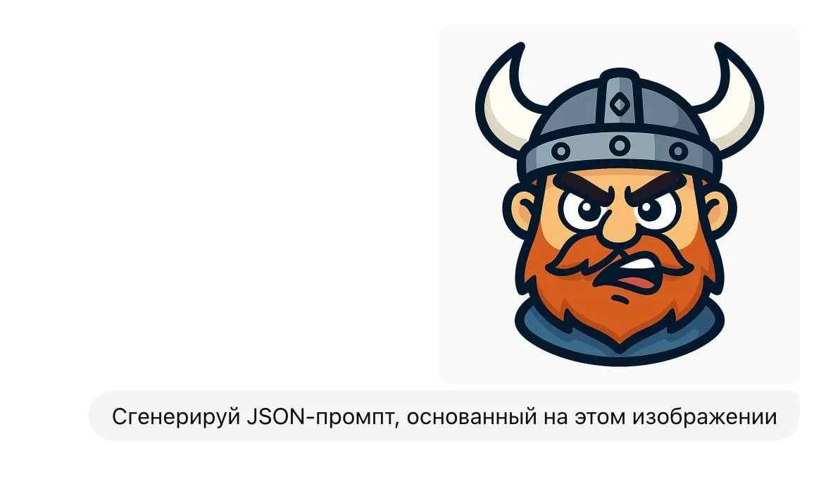 1. Кидаем нейросети изображение-референс. Просим: Сгенерируй JSON-промпт, основанный на этом изображении