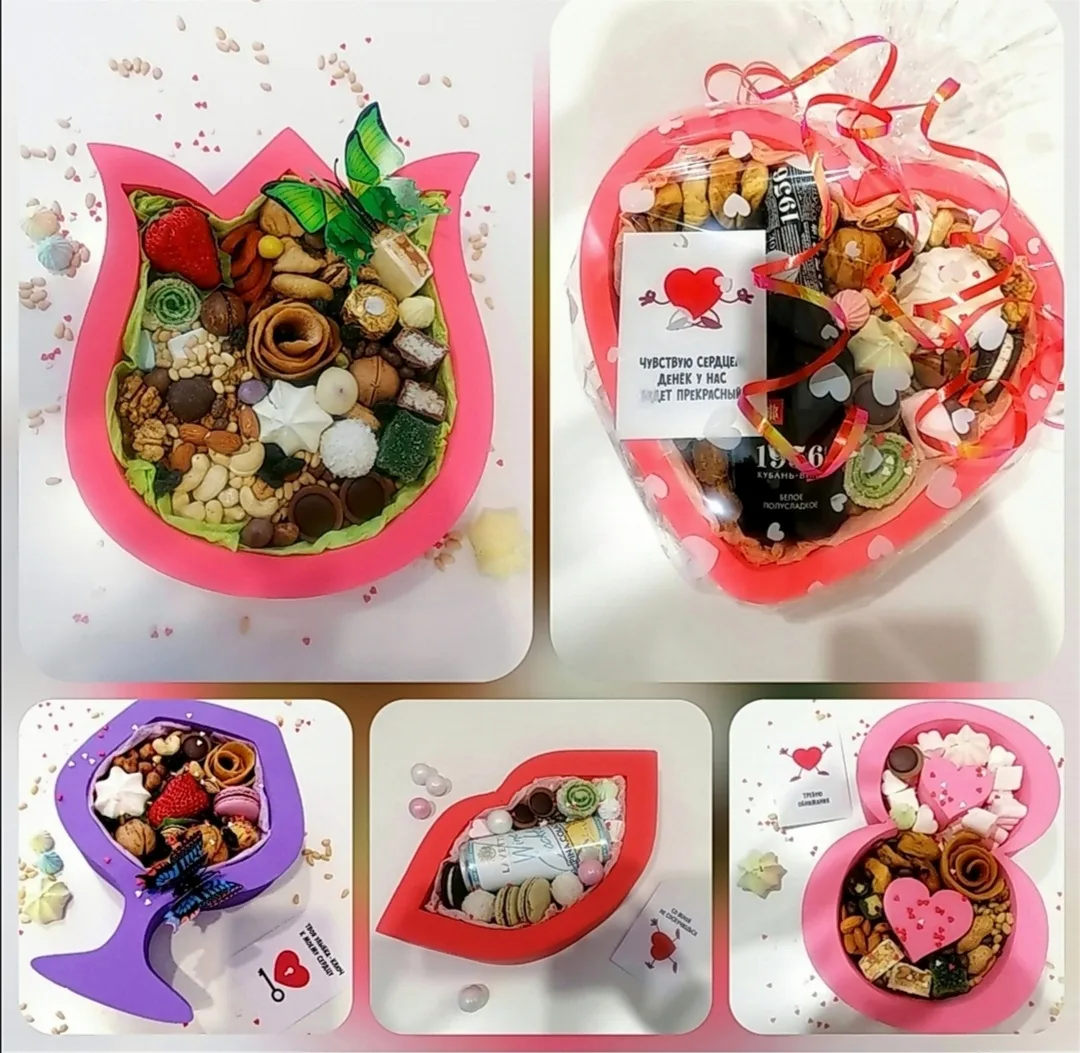 Наполнить пенобокс можно конфетами с орешками, сухофруктами, бутылочка игристого с сырами, колбасный сет, вообщем всем чем душе угодно! 🎁