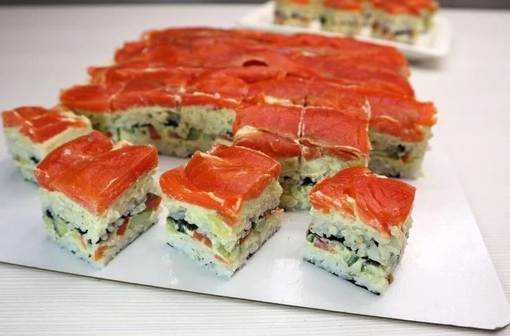 Выложить начинку на квадратики лаваша и свернуть в плотные трубочки.