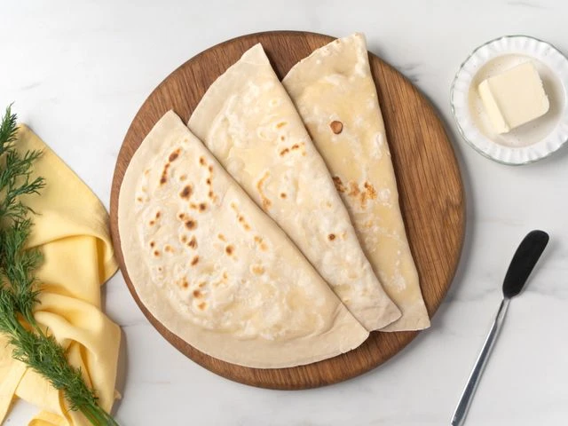 Аккуратно раскатайте скалкой, чтобы получилась плоская лепешечка.