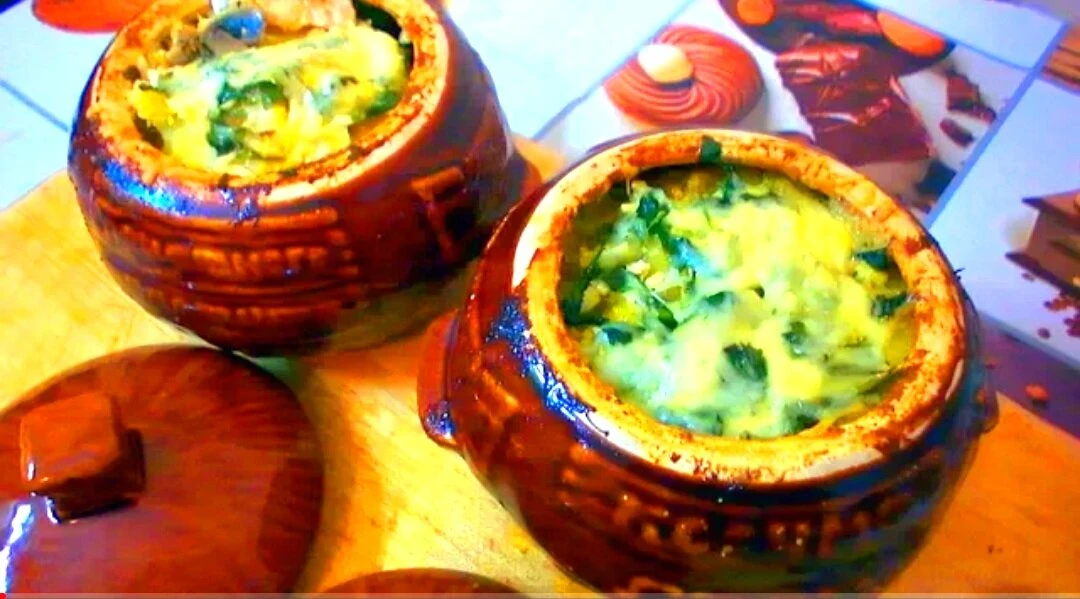 Выньте горшочки из духовки и равномерно посыпьте поверхность тёртым сыром. Отправьте горшочки обратно в духовку примерно на 5 минут, до зарумянивания. Крышкой можно не закрывать.