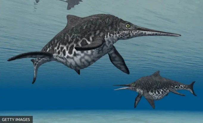 Специалисты считают, что ихтиозавр плавал в морях около 185 млн лет назад. Его длина составляла около трех метров в длину, а строение тела имело ряд особенностей: например, кость рядом с ноздрями. Также «дракон-меч» имел огромную глазницу и длинную морду, которую он использовал, чтобы есть рыбу и кальмаров.