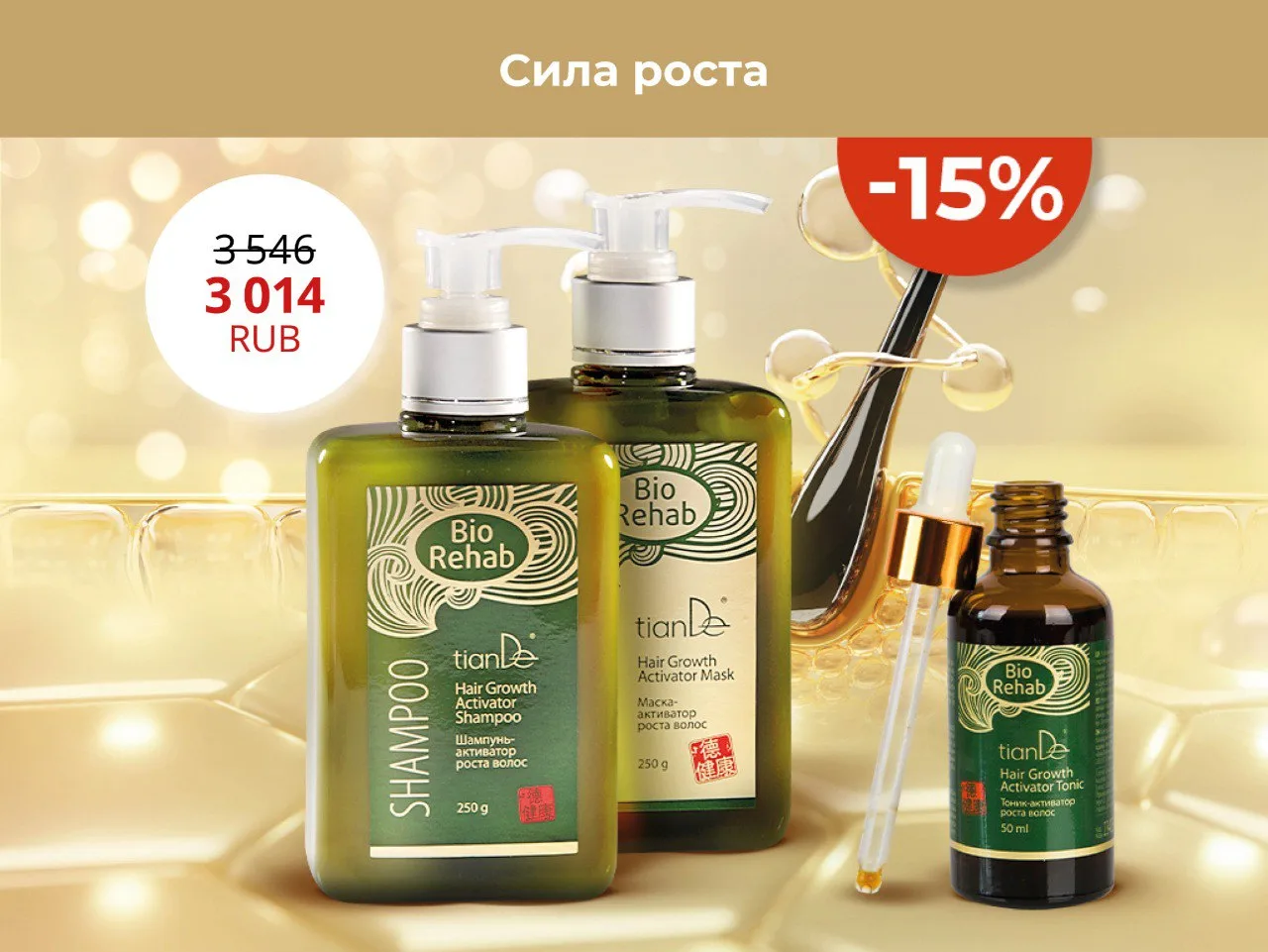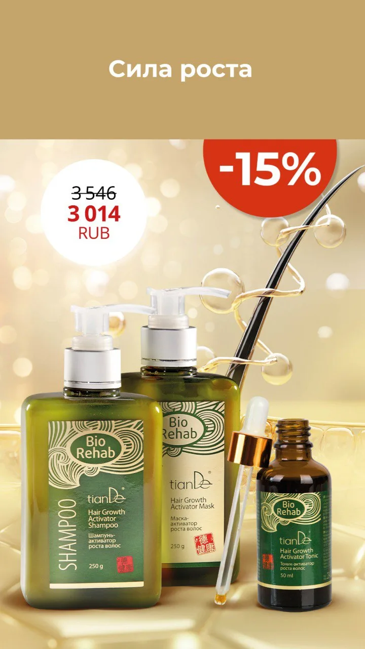 1️⃣ ШАМПУНЬ-АКТИВАТОР РОСТА ВОЛОС. При его создании используются экстракт горного имбиря, комплекс тибетских трав и инновационные компоненты, которые улучшают кровоснабжение волосяных луковиц, стимулируют рост новых волос, предотвращая их дальнеишее выпадение. Кроме того, в его составе нет сульфатов, потому что он заботится о природе так же сильно, как о красоте волос.