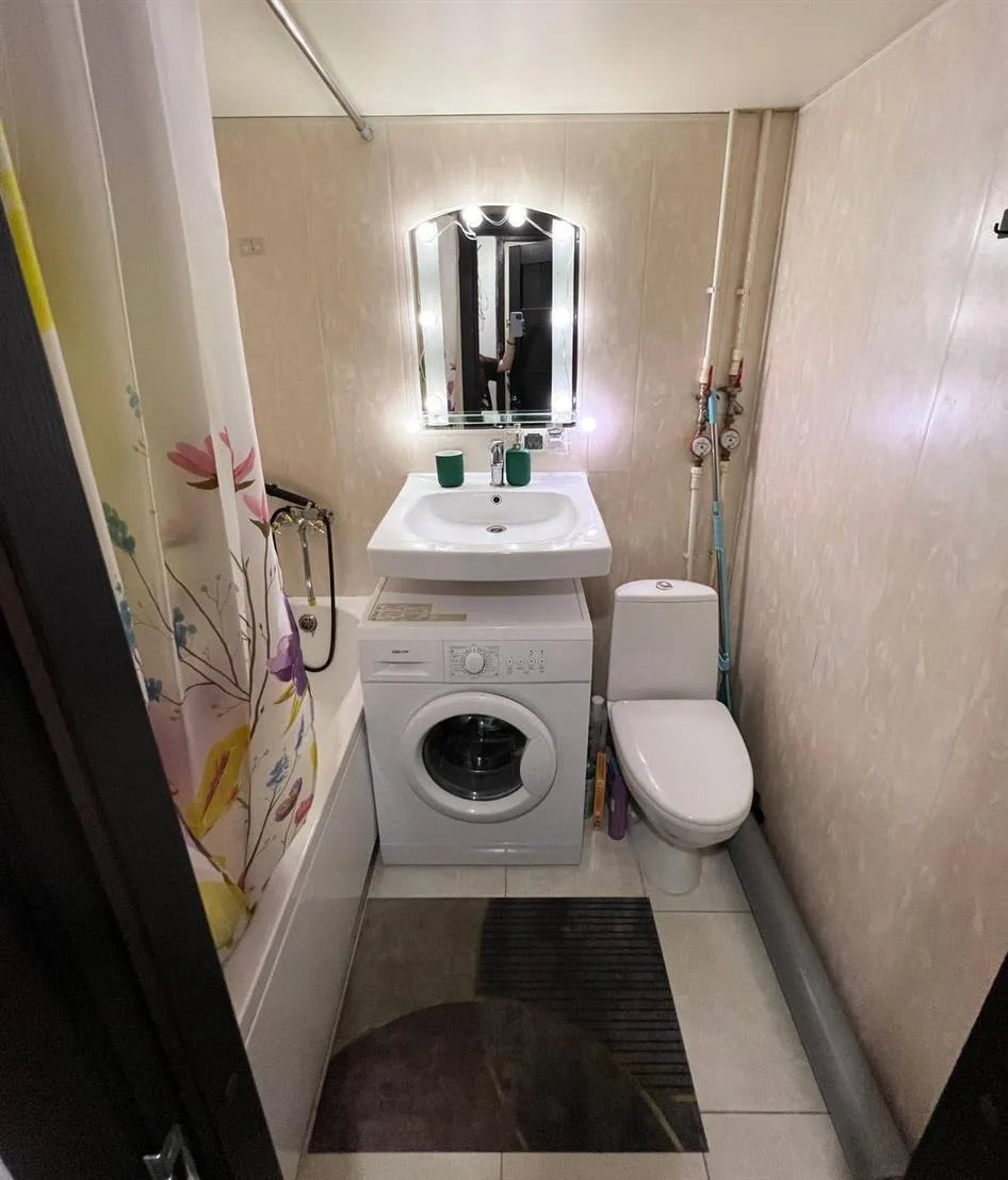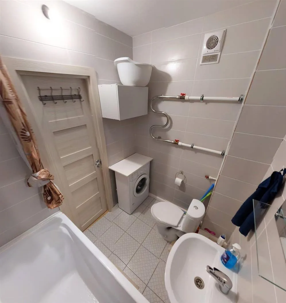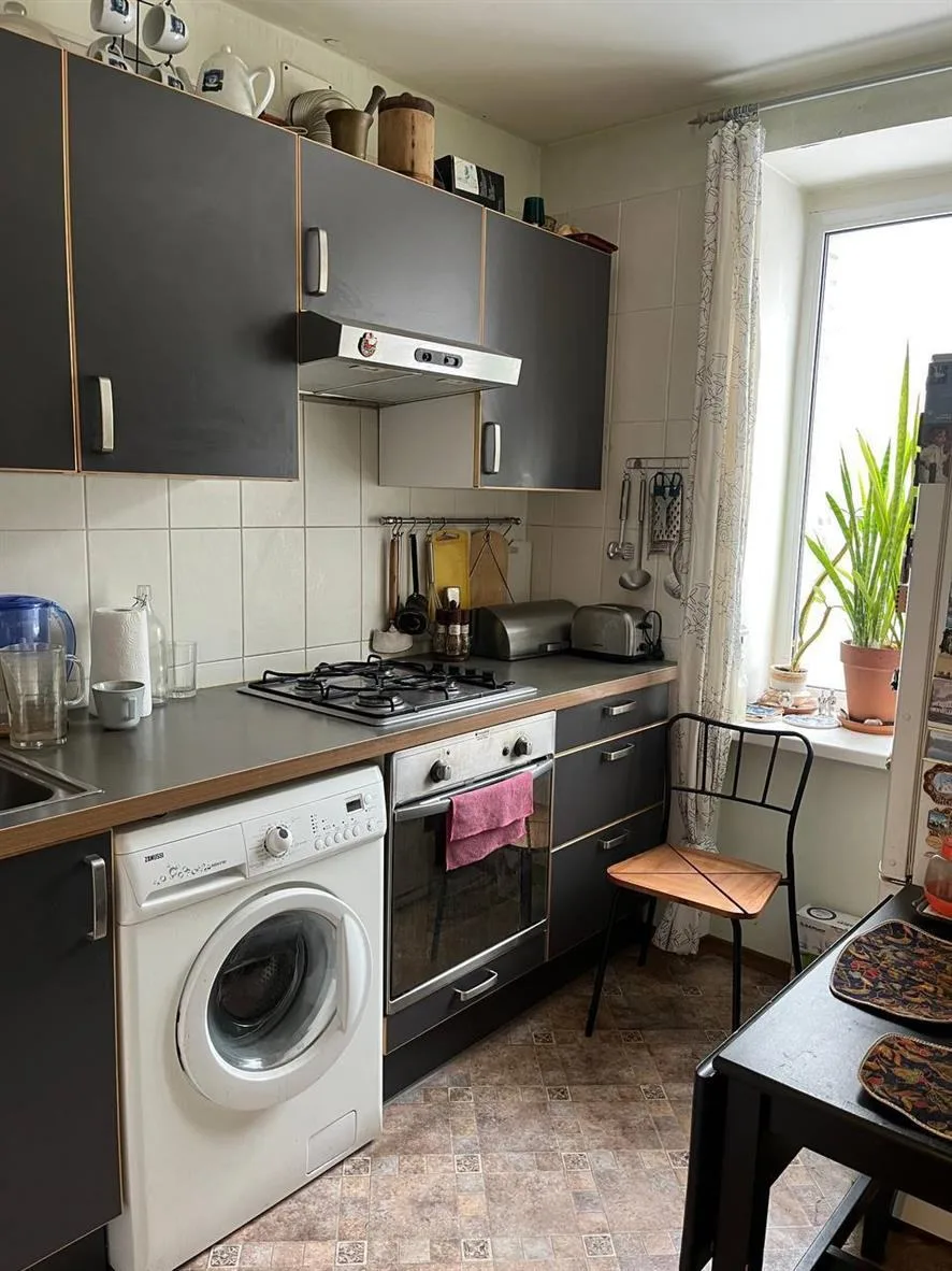 Просторная комната с эркером, обстановка эстетичная, уютная кухня, санузел в норме. В квартире остается всё из мебели, техники и необходимых предметов быта.