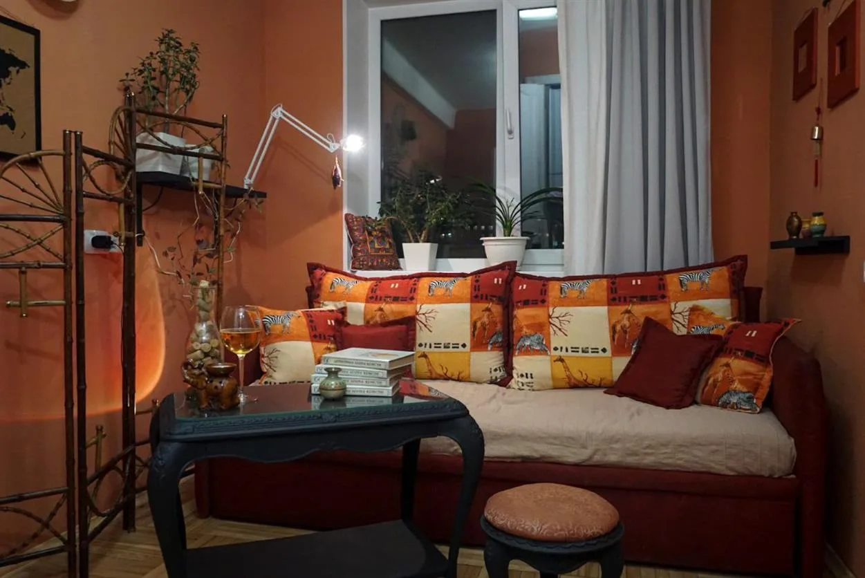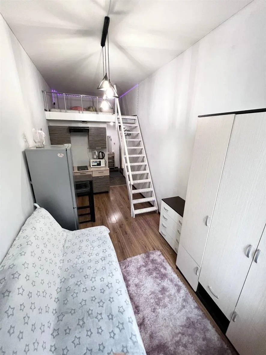 Два этажа в доме переделаны в студии, не коммуналка, соседи хорошие. Сантехника новая. Матрас новый. Диван (раскладывается в полноценное двухместное спальное место), огромный шкаф, камод + кухня и обеденная зона. Хороший вид из окна.