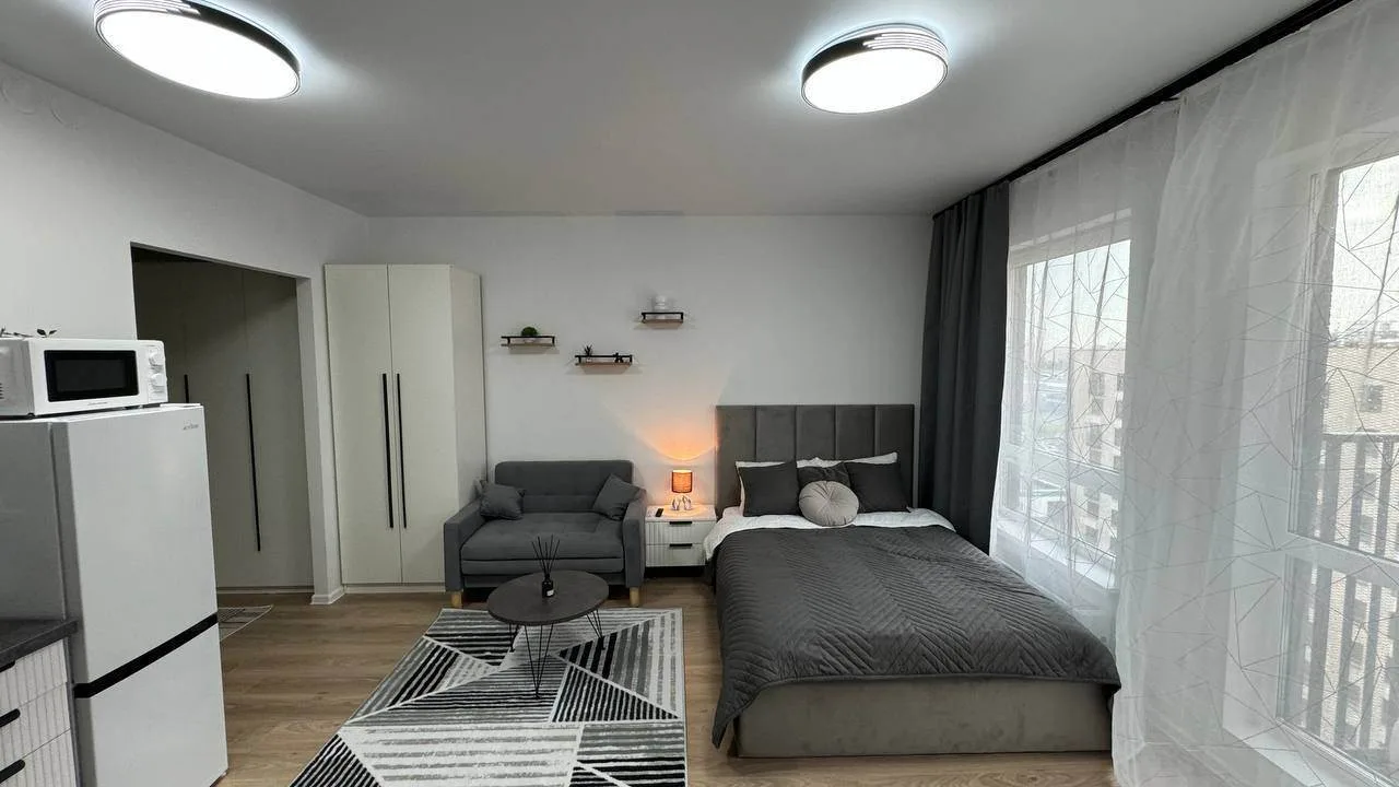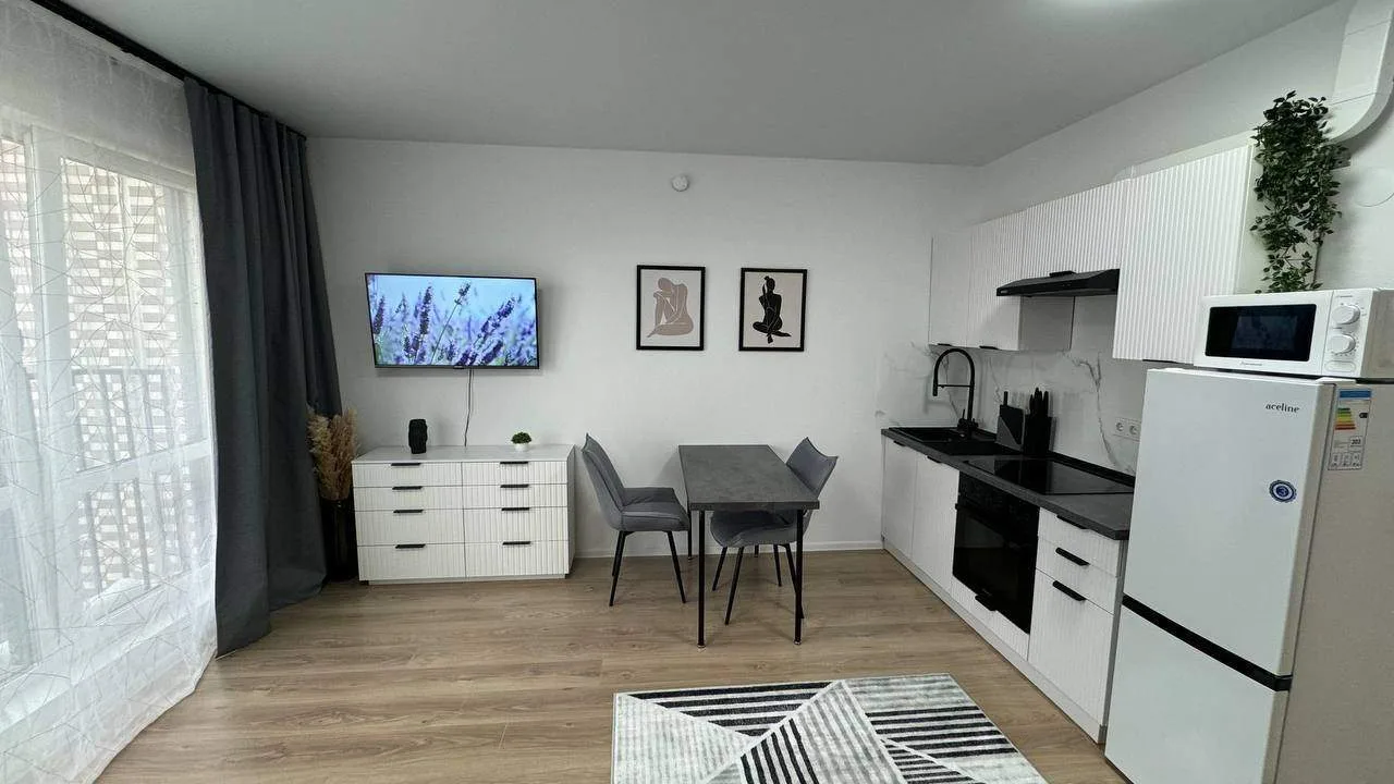 Квартира 45 м² с качественным ремонтом, полностью укомплектована мебелью и техникой. Двуспальная кровать, диван, гардеробная, кладовая, встроенная кухня с обеденной зоной. Есть стиральная машина, бойлер, холодильник, варочная панель, духовой шкаф, вытяжка, кондиционер и ТВ. Уютное и готовое к проживанию пространство.