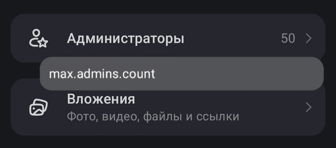 В чатах более 100 участников стоит ограничение в 50 админов, если попробовать добавить 51 админа выскакивает предупреждение