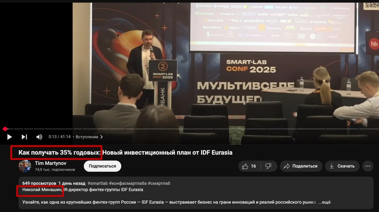 "Самолета" было с директором по взаимодействию с инвесторами — Минашиным Николаем