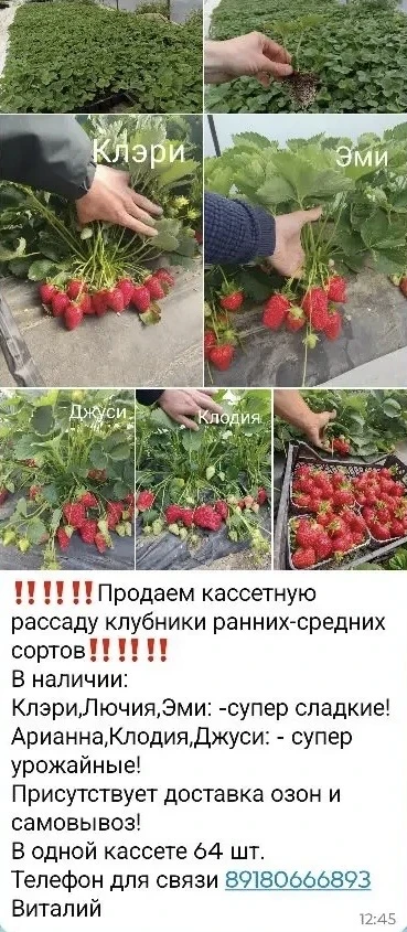Клубники 🍓 рассада есть сейчас у нашего друга Виталика . Информация вся на фото ☝️☝️☝️