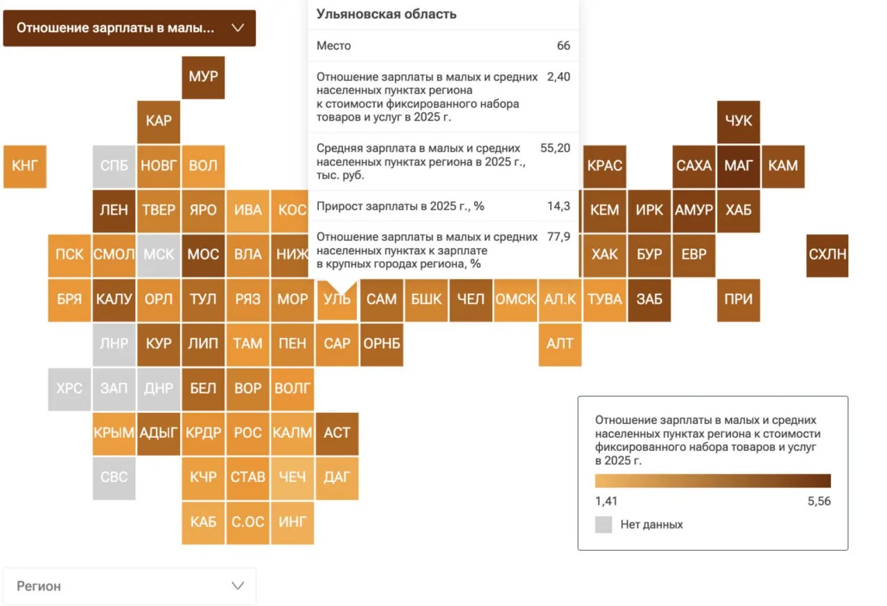 💰 Ульяновская область заняла 66-е место в рейтинге по зарплатам в малых и средних населённых пунктах за 2025 год